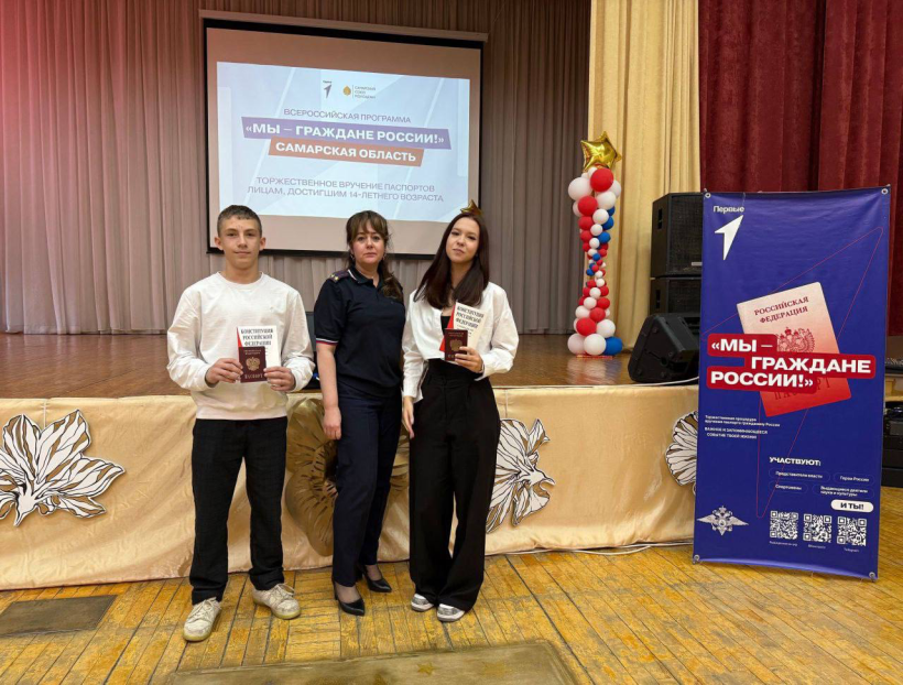 В рамках Всероссийской акции МВД «Мы — граждане России!», реализуемой по инициативе «Движение Первых», направленной на формирование у молодёжи уважительного отношения к государственным символам и документам, укрепление патриотизма и гражданской идентичности, полицейские Самарской области приняли участие в торжественных церемониях, вручения паспортов подросткам, приуроченных ко Дню народного единства.