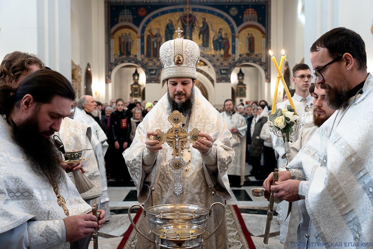 Его Преосвященству сослужили клирики кафедрального храма. Богослужебные песнопения исполнил хор Преображенского собора. Вместе с епископом и священнослужителями молились церковнослужители, сотрудники, прихожане и паломники.