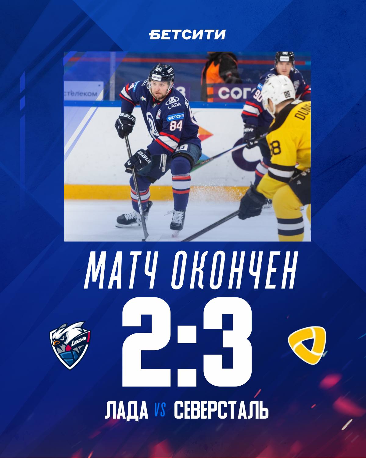 В ледовом дворце спорта «Лада-Арена» прошёл очередной матч регулярного чемпионата КХЛ между «Ладой» и череповецкой «Северсталью». Победу одержали гости со счётом 3:2.