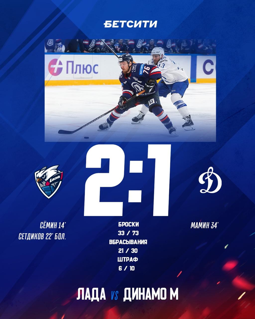 В Тольятти завершился матч регулярного чемпионата КХЛ, в котором «Лада» принимала московское «Динамо». Победу в игре, проходившей на стадионе «Лада-Арена», одержали хозяева со счётом 2:1.