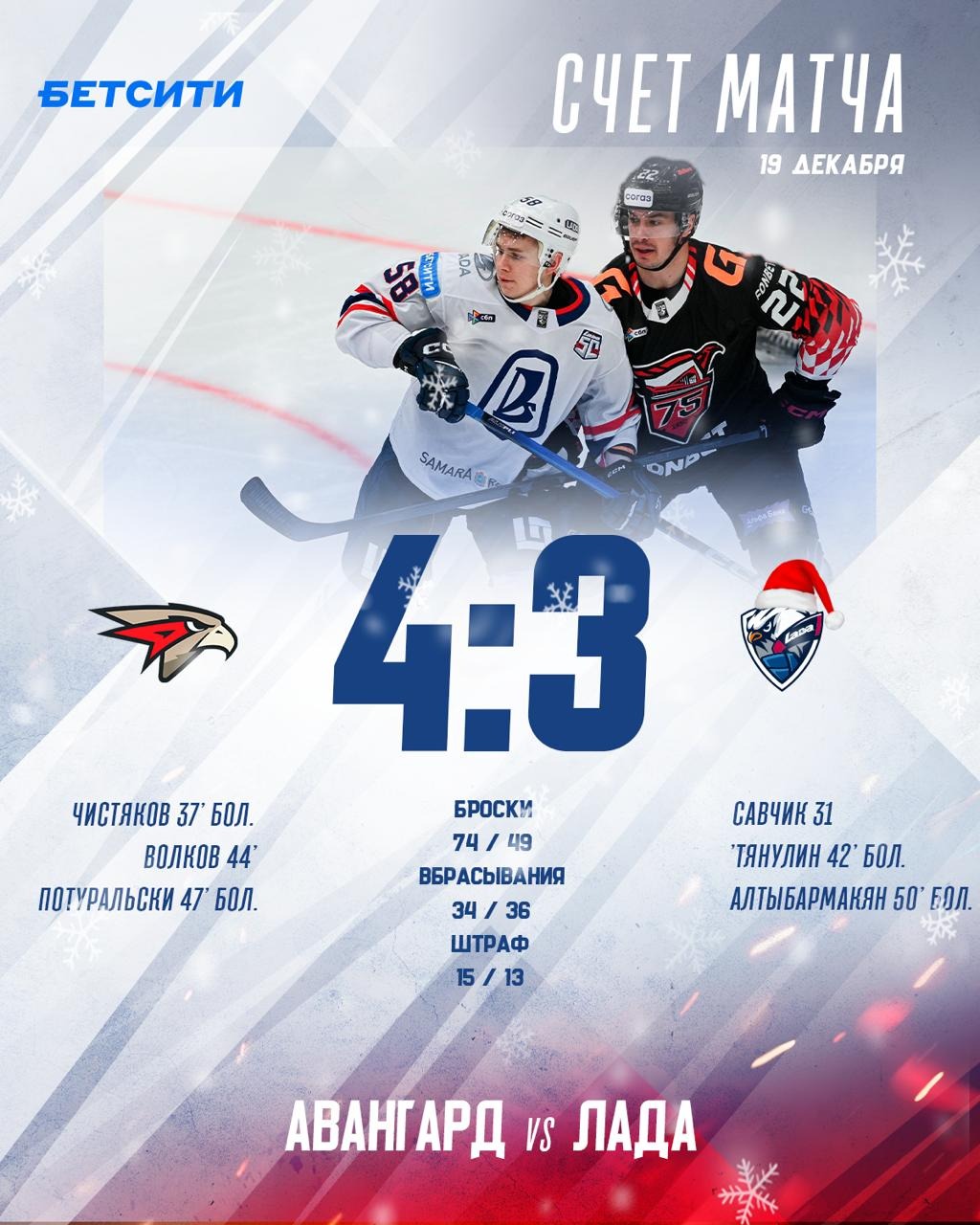 По итогам матча в Омске ХК «Лада» проиграла «Авангарду» в серии булитов 4:3