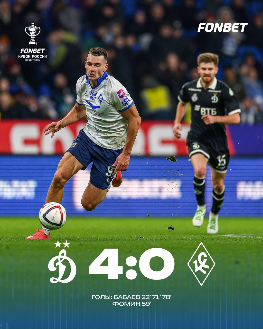Матч 6-го тура группового этапа Пути РПЛ Фонбет Кубка России завершился со счётом 4:0 в пользу москвичей.