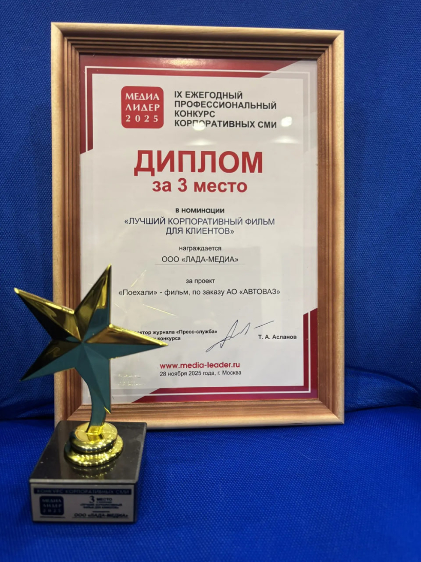 Фильм по заказу АВТОВАЗа к юбилею автомобиля ВАЗ-2101 «Поехали» получил награду в номинации «Лучший фильм для корпоративных клиентов».