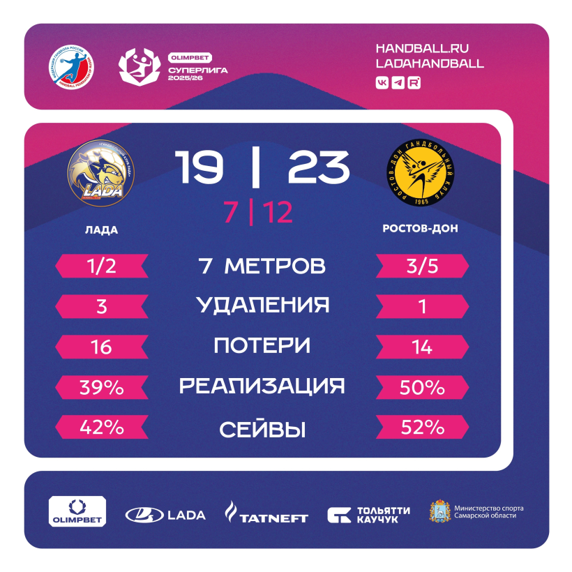 Это была жаркая встреча, но, к сожалению, кончилась проигрышем. Сегодня гандбольная «Лада» сыграла против «Ростов-Дон». Делимся статистикой матча «ЛАДА» (Тольятти) - «Ростов-Дон» (Ростов-на-Дону).