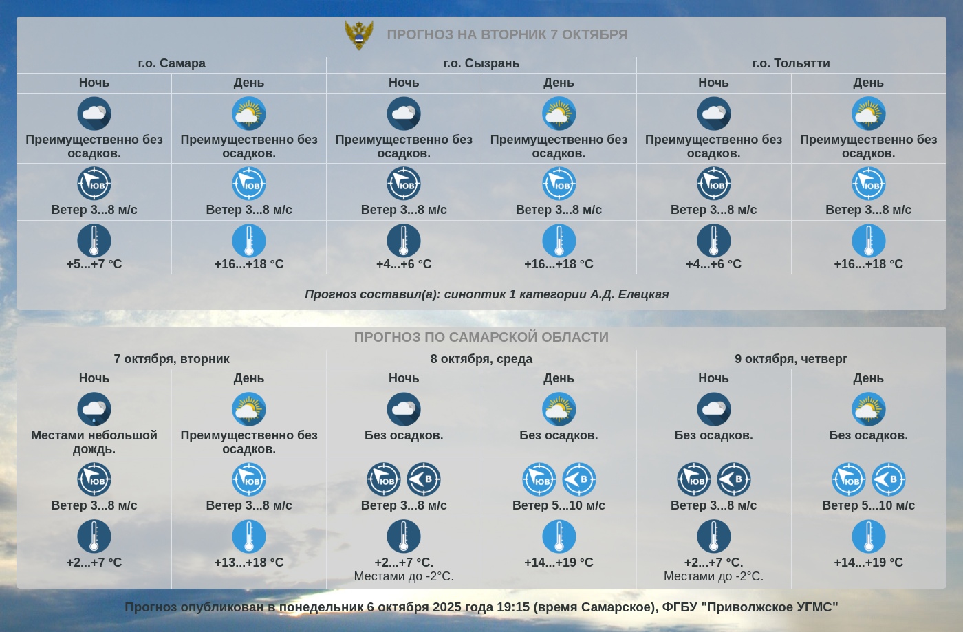 По данным ПРИВОЛЖСКГИДРОМЕТ 7 октября воздух прогреется до +13...+18 градусов.