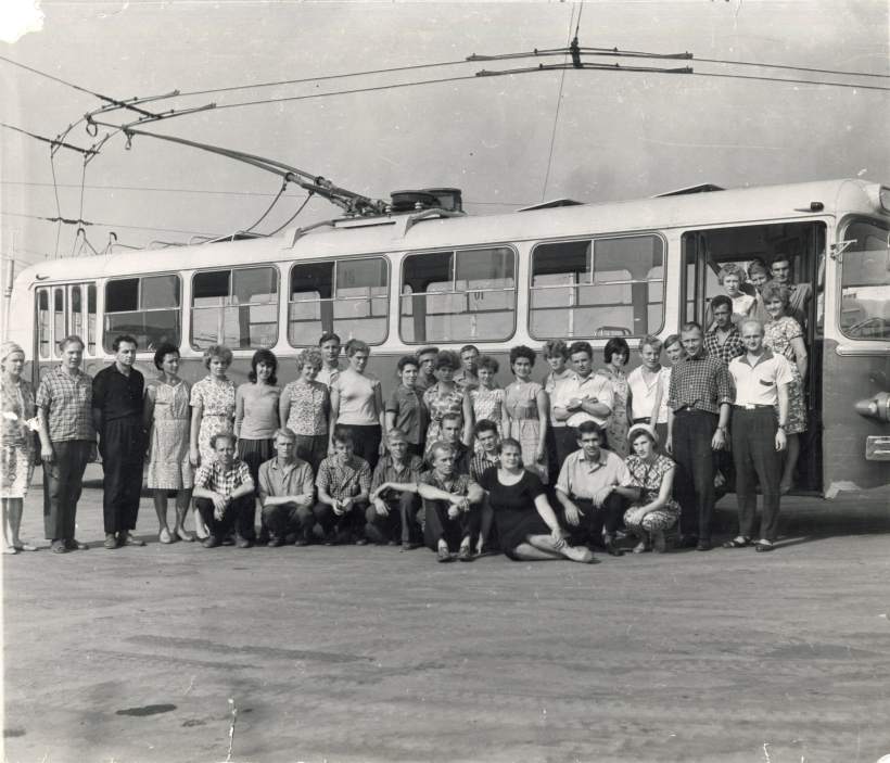 На ч/б фото - первый выпуск водителей троллейбусов, лето 1966 года. (Из архивов Тольяттинского краеведческого музея)