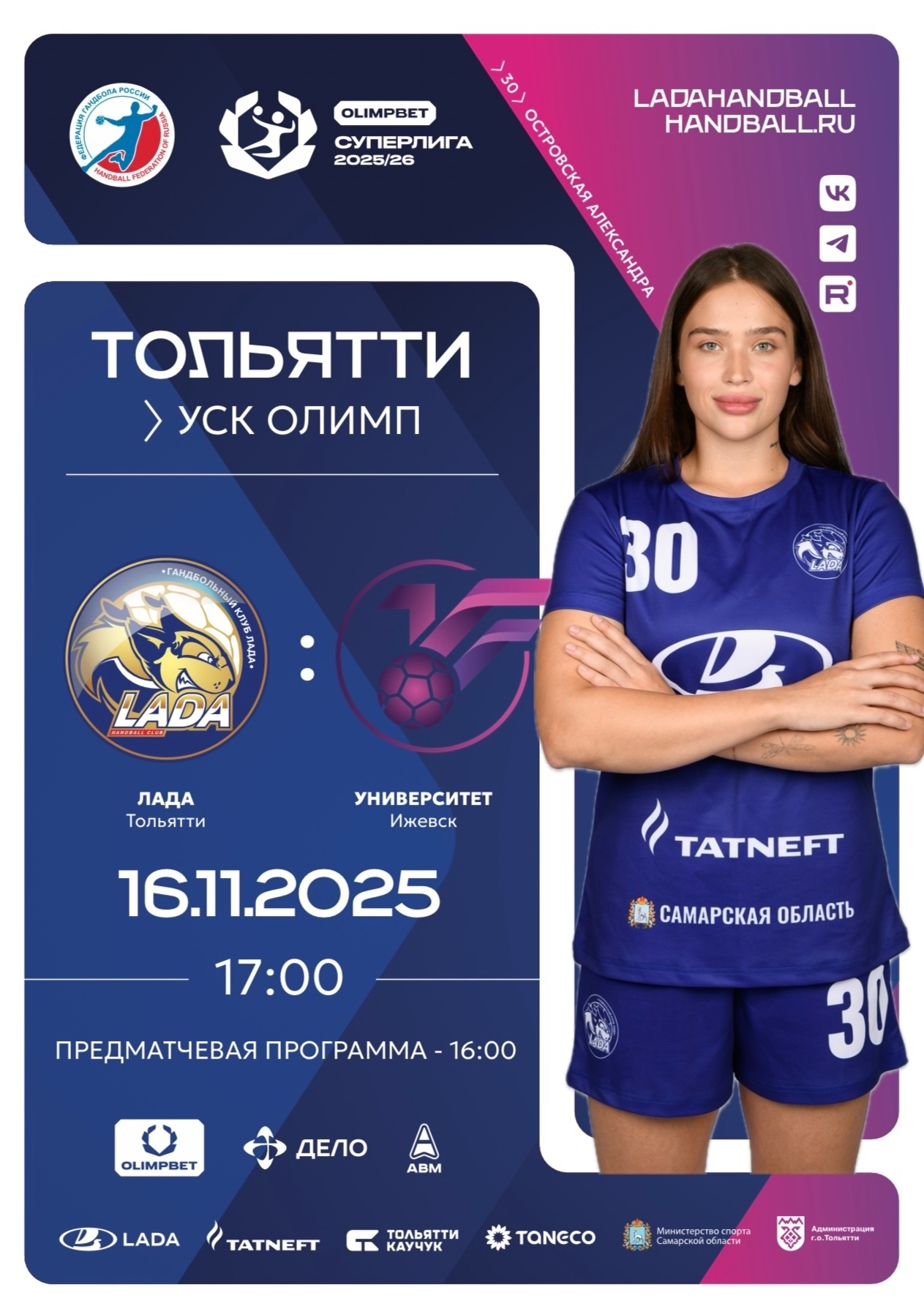 16 ноября в УСК «Олимп» пройдет игра между командами «Лада» (Тольятти) vs «Университет» (Ижевск).