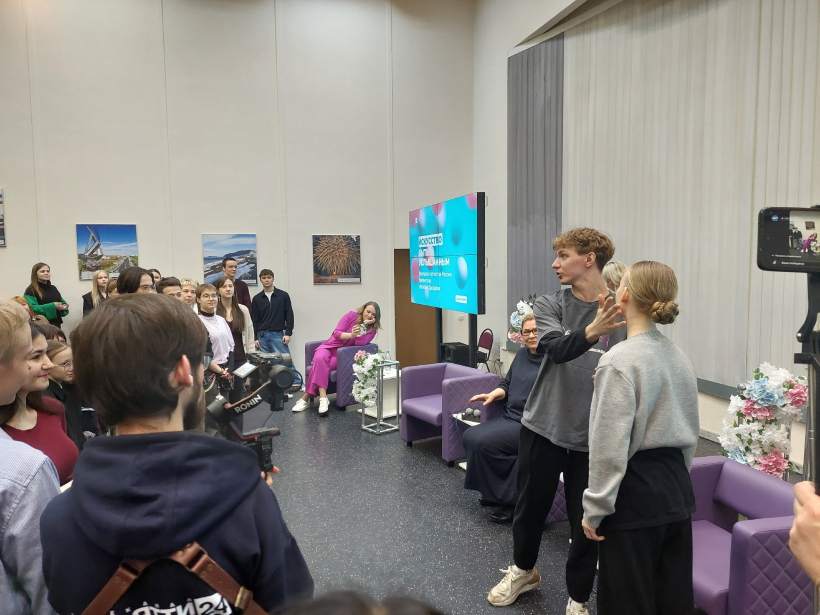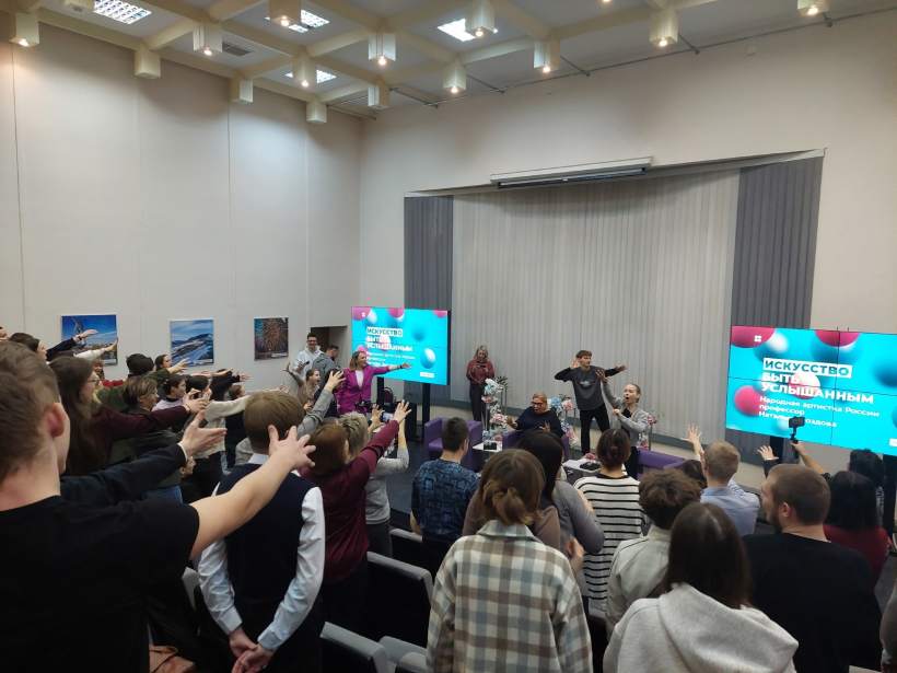 Актеры театра '"Колесо" Олег Батищев и София Сергеева вместе с Натальей Дроздовой показали тольяттинским студентам необычные упражнения для голоса и дикции!