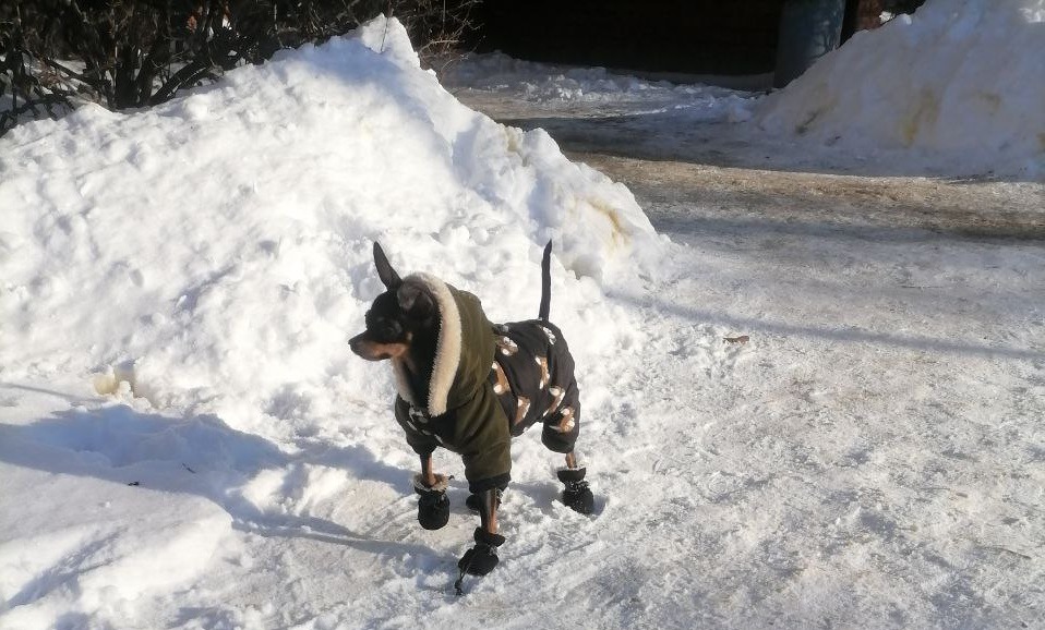 Для декоративных, короткошёрстных и коротколапых пород стоит подбирать зимнюю одежду: например, комбинезон или жилетку.