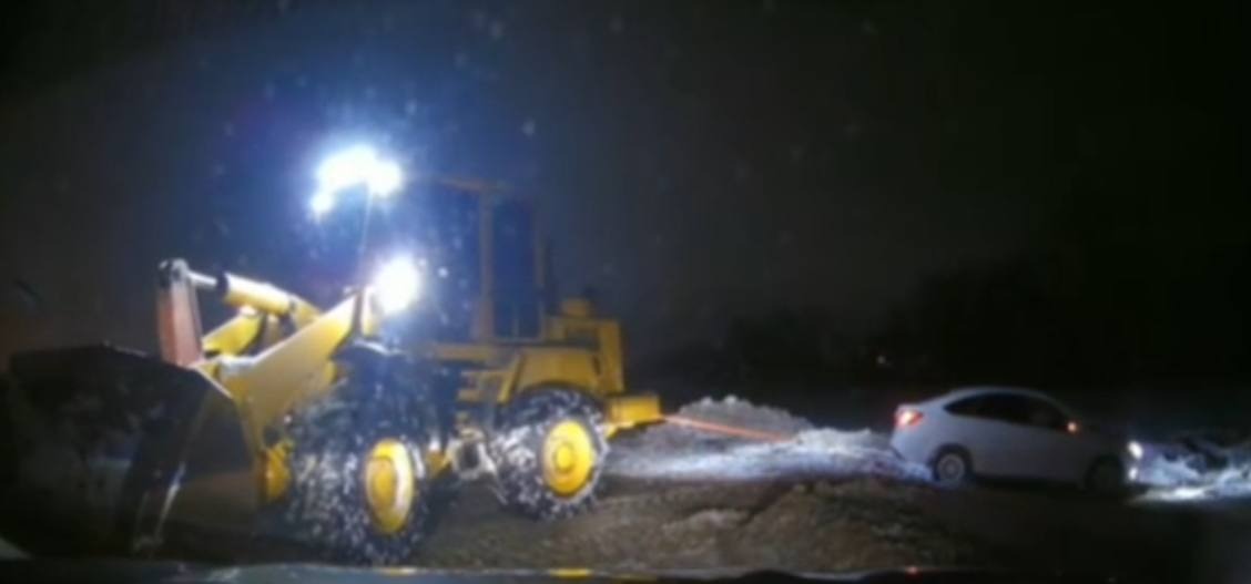 Благодаря помощи очевидцев и мужчине на тракторе автомобиль достали из кювета.