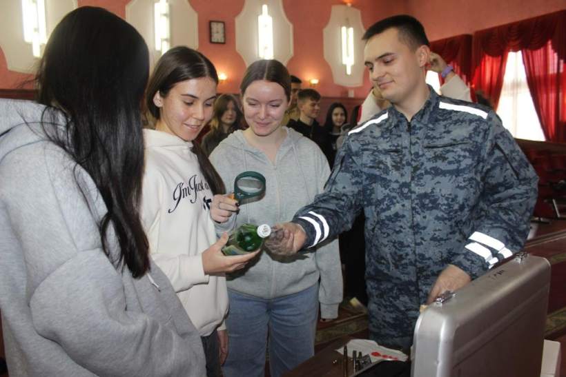 Старший эксперт ЭКО У МВД России по городу Тольятти старший лейтенант полиции Виктор Данилов пришел к студентам с криминалистическим чемоданом. Рассказал о служебных задачах экспертов, выполняемых во время выездов на места преступлений. Будущие юристы узнали, с каким набором профессиональных инструментов эксперты выезжают на происшествия, как осуществляют поиск и сбор следов и предметов, необходимых для расследования уголовного дела.