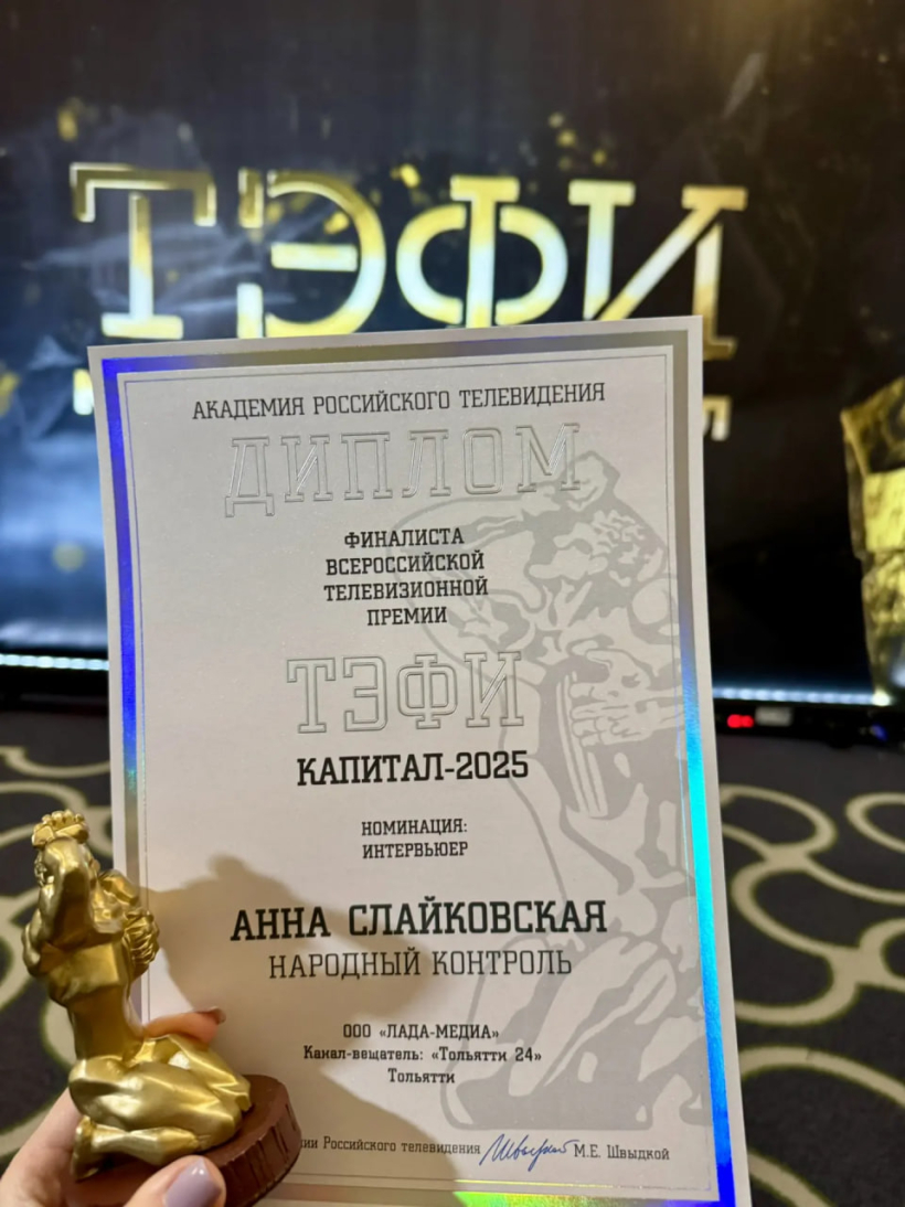 Проект телеканала ТОЛЬЯТТИ 24 компании «ЛАДА-МЕДИА» стал финалистом престижной Всероссийской телевизионной премии «ТЭФИ капитал 2025».