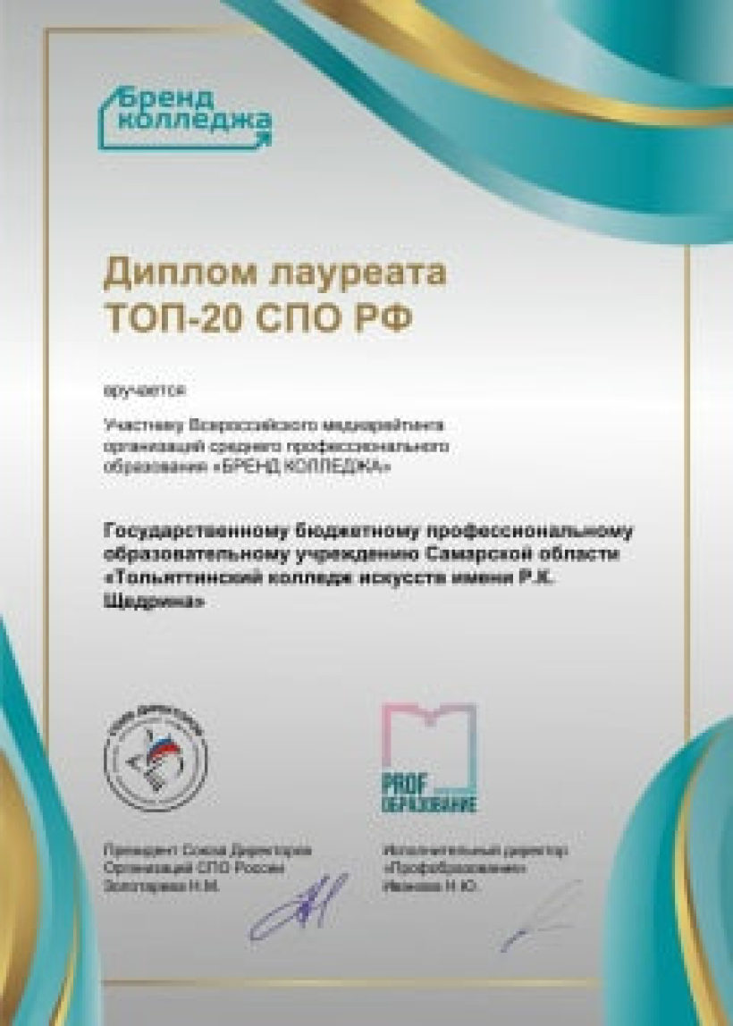 Социальные сети и сайт Тольяттинского колледжа искусств им. Р.К. Щедрина вошли в ТОП-20 Всероссийского медиарейтинга «Бренд колледжа».