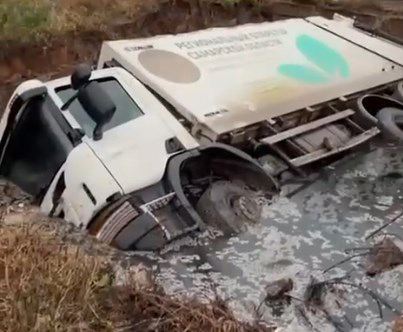 Неприятный инцидент произошел на ул. Воздушного Флота. По словам местных жителей, они давно просили оградить сливную яму, а водителей мусоровозов лично предупреждали не наезжать на бетонную плиту над колодцем.