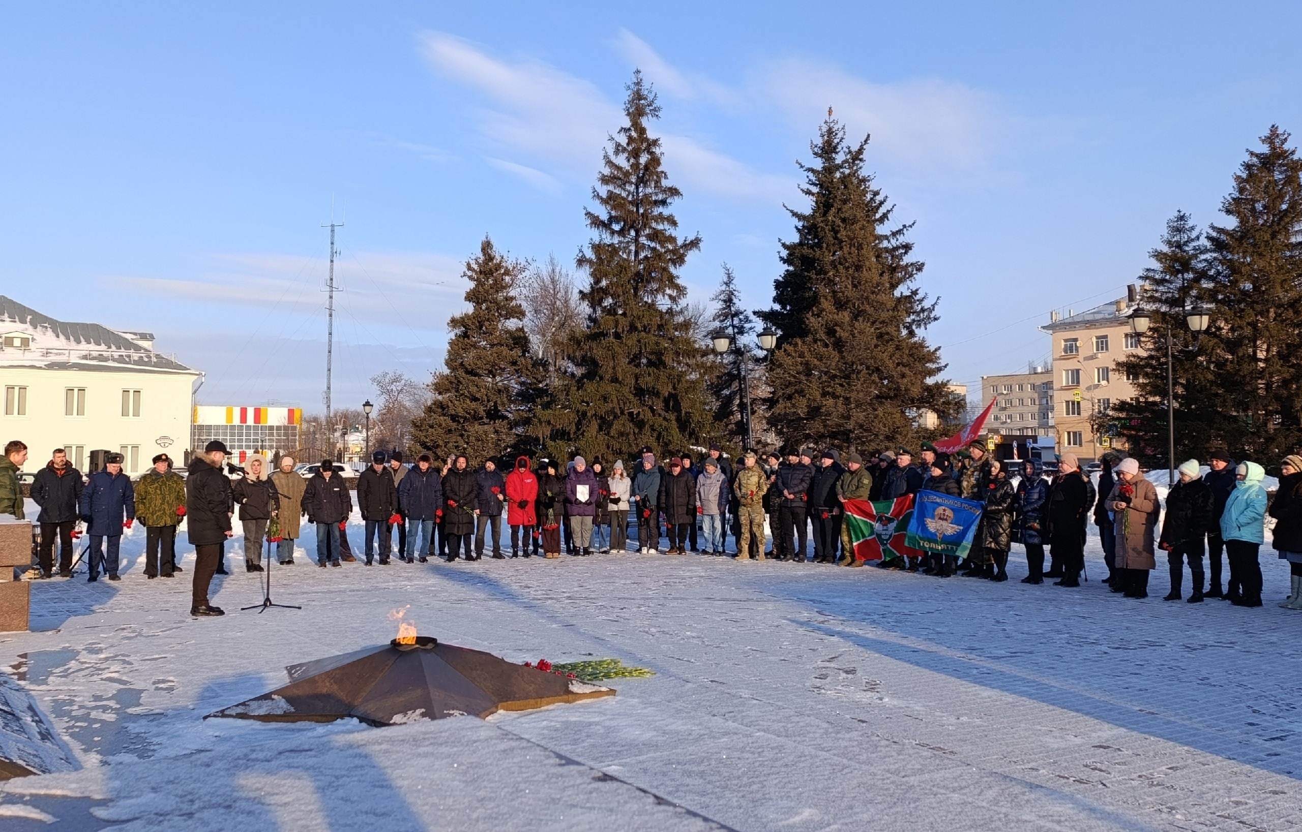 1 января у обелиска Славы на площади Свободы в Тольятти прошла акция в память об участниках СВО, погибших в Макеевке в новогоднюю ночь 2023 года.